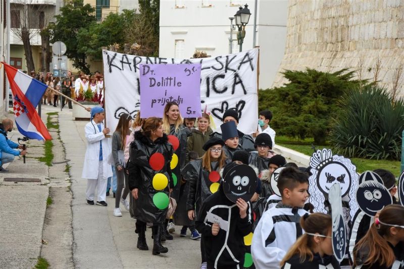U nedjelju, 23. veljače sa trajektnog pristaništa krenula je tradicionalna maškarana povorka obalom i gradskim ulicama u pravcu trga, pijace.