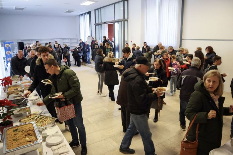 Paški župnik don Božo Barišić blagoslovio je jelo i sve nazočne na današnjem domjenku. Valja naglasiti da su se za pripremu jela i slastica pobrinuli učenici i nastavnici ugostiteljskog usmjerenja SŠ Bartola Kašića i djelatnici Dječjeg vrtića Paški mališani. Dobru atmosferu i božićno raspoloženje uz niz božićnih melodija napravila je Grupa Infishando, a prisutni građani i mnoštvo najmlađih uživali su druženju i blagdanskom meniju.