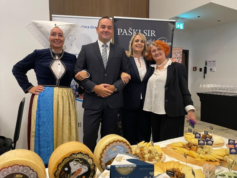 Vesna Karavanić, direktorica TZ Grada Paga, Martina Pernar Škunca, direktorica marketinga u Paška sirana i predsjednica Paški sir Udruga proizvođača - Pag Cheese Makers Association zajedno s Vlatkom Vučić Marasović u paškoj nošnji, predstavili su grad i otok Pag te bogatu pašku gastronomiju.