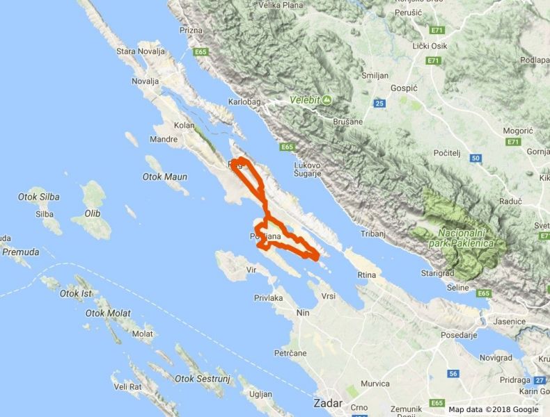 Start “Rekreativne rute” je u Vlašićima od kuda se laganom uzbrdicom dižemo za odvajanje prema ornitološkom rezervatu Veliko i Malo Blato (tu se rute odvajaju). “Rekreativna” se okreće prema Povljani od kuda se ide do Stare Povljane uz prelijepi pogled na vanjsku stranu dolazimo do Smokvice i spust do cilja opet nazad u Vlašićima.
