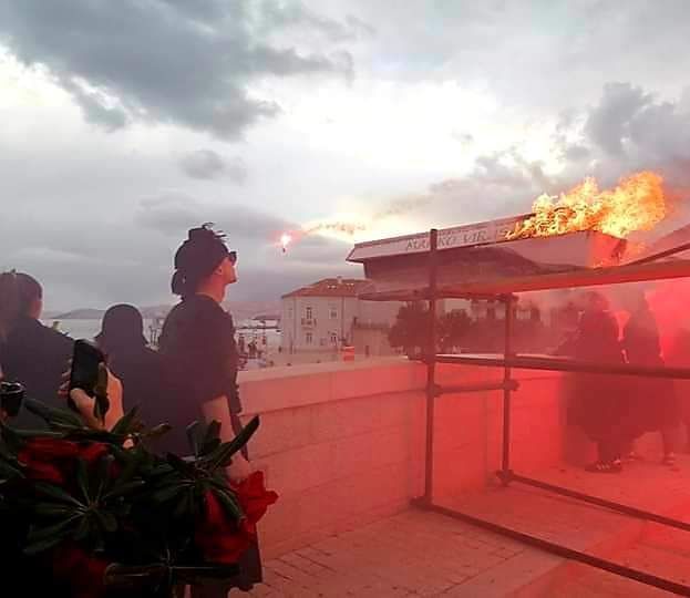 Jučer je čitanjem oporuke i spaljivanjem Marka Virusa, krivca za sve nevolje završen Paški zimski karneval. Tužna povorka krenula je ispred Doma kulture prema mostu odakle je Marko Virus spaljen i bačen u more.