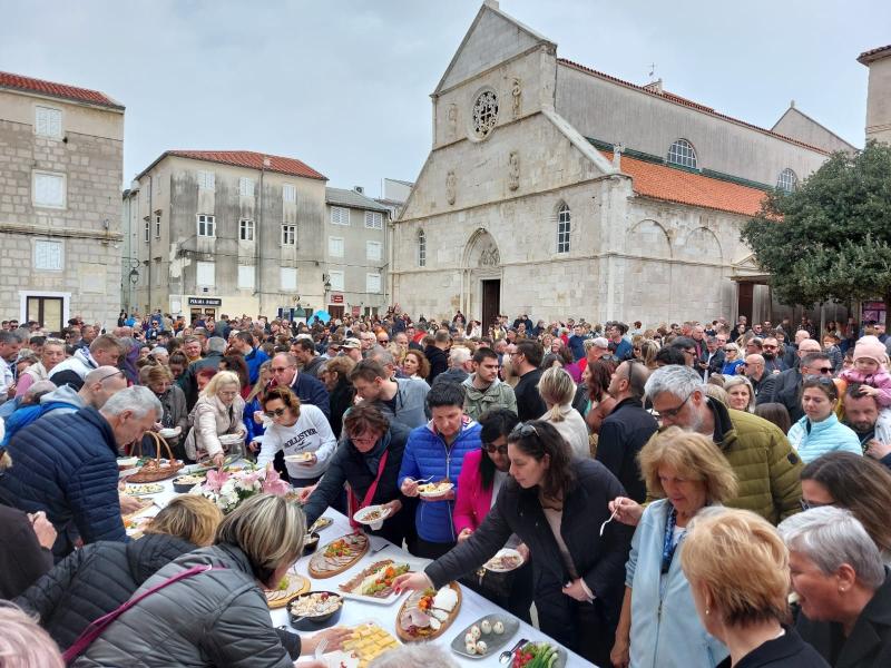U odličnoj atmosferi i blagdanskom ugođaju koju su uljepšali članovi Gradske glazbe, posjetitelji su uživali u izvrsnim paškim specijalitetima i delicijama. Na najbogatijem gastro stolu na otoku Pagu kojeg su pripremili djelatnici restorana Na Tale rezao se pršut, poslužena je fritaja sa šparogama, riblji specijaliteti, paški sir, šunka, pogače i uskršnje slastice od skute, a oni najmlađi uživali su obojanim jajima.