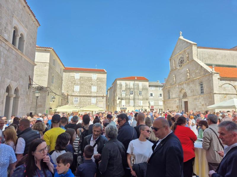 Nakon svečane mise koja se održala u Zbornoj crkvi Uznesenja Marijina, uskršnji doručak na Trgu Petra Krešimira IV okupio je veliki broj gostiju, sugrađana i posjetitelja, koji su uživali u druženju, paškim delicijama i veseloj atmosferi.