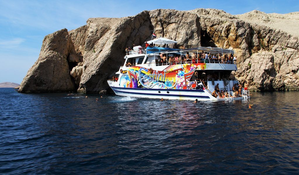 Izlet započinje u 12:00h s Noa Beach cluba na popularnoj plaži Zrće. Za vrijeme izleta, posada poslužuje gostima obrok i za to vrijeme gosti imaju na raspolaganju neograničenu konzumaciju pića. Trajanje vožnje do prvog stajanje je otprilike sat vremena i dolazi se do stijena u paškim vratima na koju se pristaje.
