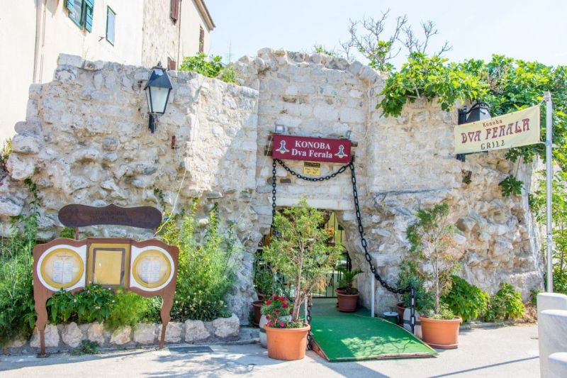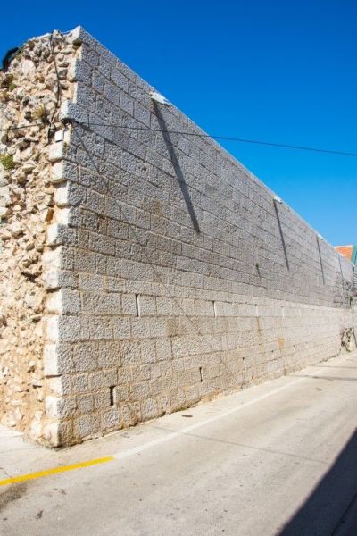 Grad Pag su do polovice 19. stoljeća opasavale su velike i lijepe zidine s obrambenim kulama. Pag je imao nekoliko gradskih vrata, a najveća su bila na predjelu Katine koja su se zvala Porta Marina od kojih je sačuvan navratnik kneza Nikole Tiepola, a južnije od njih bila su Mala vrata. Kula Skrivanat podignuta je kako svjedoči natpis s grbom kneza Tome Zorzija 1468. godine te je s dijelom sačuvanih gradskih bedema najbolje sačuvani ostatak obrambenog sustava grada Paga. Danas uz kulu prolazi šetnica, a u ljetnim mjesecima u njoj se održavaju razne kulturno-zabavne manifestacije poput nastupa klapa, pjevačkih zborova, kazališnih predstava i ljetnih radionica. Današnja zgrada gradske uprave podignuta je na nekadašnjoj kuli Kamerlengo 1906. godine. Na njenom je mjestu za potrebe tadašnje Obćine Pag zgradu podigao poznati paški načelnik Frane Budak. Dio južnih gradskih zidina vidljiv je tek djelomično na južnom dijelu grada na jugu predjela Katine.