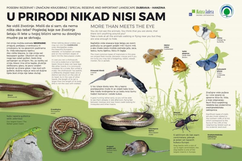 U suradnji Natura Jadere, Javne ustanove za upravljanje zaštićenim dijelovima prirode na području Zadarske županije i Turističke zajednice grada Paga postavljene su tri dvojezične informativne table u rezervatu šumske vegetacije Dubrava – Hanzine. Riječ je o jedinoj listopadnoj šumi hrasta medunca na otoku Pagu koja je, osim što je u kategoriji posebnog rezervata, zaštićena i kao značajni krajobraz.