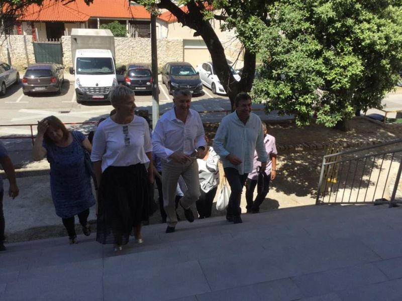 Župana Longina i suradnike dočekalo je izaslanstvo grada Paga; Ante Fabijanić, gradonačelnik Grada Paga, Davorin Fabijanić, zamjenik gradonačelnika, Željka Zubović, ravnateljica Osnovne škole Jurja Dalmatinca, Jasna Magaš, vijećnica Gradskog vijeća i Josip Tičić, vijećnik Skupštine Zadarske županije.