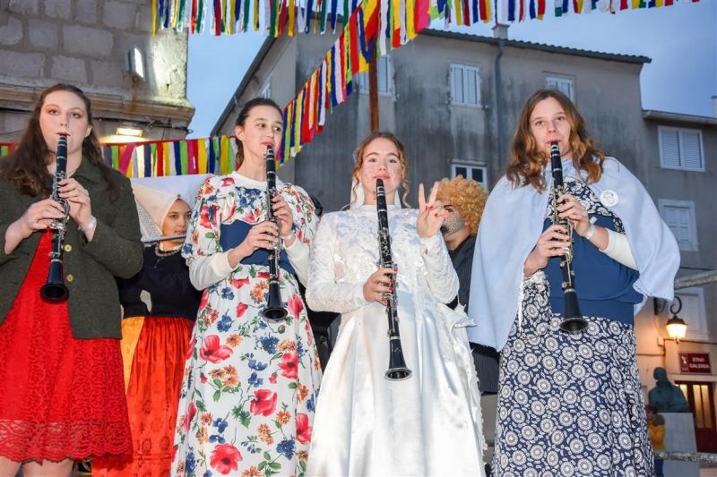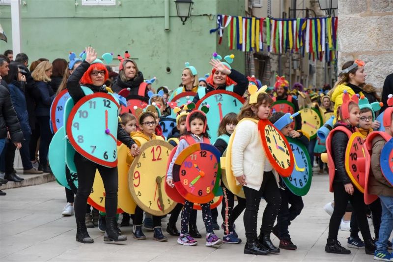 U nedjelju, 23. veljače sa trajektnog pristaništa krenula je tradicionalna maškarana povorka obalom i gradskim ulicama u pravcu trga, pijace.