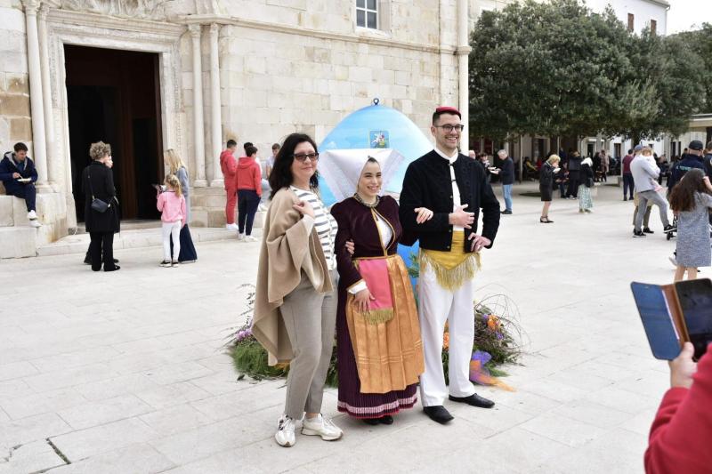 Na glavnom gradskom trgu par u paškoj narodnoj nošnji izazvao je veliku pažnju posjetitelja koji su se htjeli fotografirati s njima uz uskršnje jaje kako bi ponijeli predivne uspomene s uskršnjih praznika.