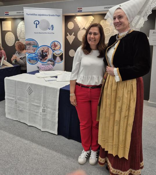 Neda Oros, predsjednica Društva paških čipkarica Frane Budak prezentirala je šivanje ovog bijelog zlata grada Paga dok je ljepotu ženske paške narodne nošnje pokazala Jelkica Jaić.