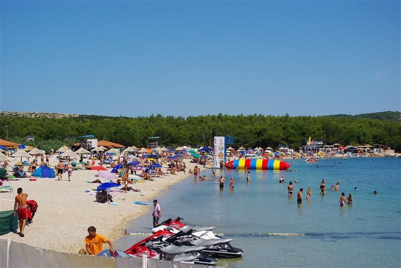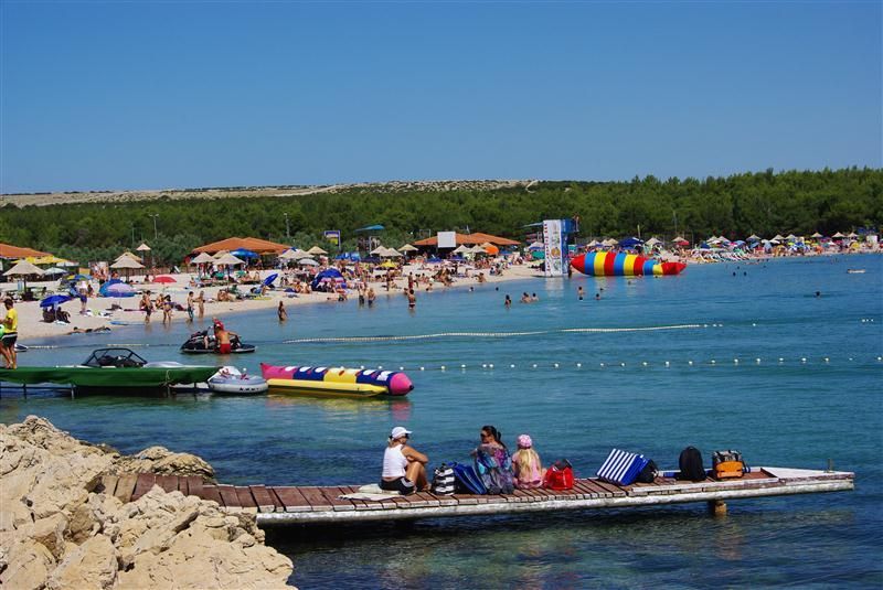 Zrće si trova sul lato occidentale della baia di Pago. Piace particolarmente a chi cerca forme di intrattenimento nell'arco di tutto il giorno. Ci sono diversi stabilimenti sulla spiaggia che operano come caffè durante il giorno, per poi diventare bar e discoteche di notte. La vita notturna è arricchita dalla presenza di ospiti quali cantanti e DJ, provenienti dalla Croazia e dall'estero. Il programma di intrattenimento dura 24 ore al giorno.