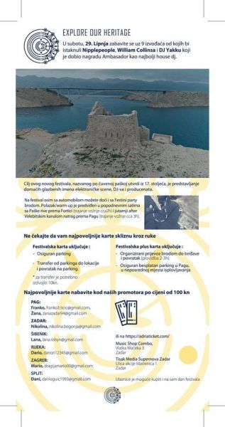 Pod pokroviteljstvom Grada Paga i Turističke zajednice Grada Paga, na utvrdi Fortica, u blizini Paškog mosta na otoku Pagu, 29. i 30. lipnja 2019 održati će se jedinstven festival elektroničke glazbe uz vrhunski line-up. Nastupaju Lukeni, Tomislav Rupić, Groove Masters, Jakov Tabula, Niplepeople, Yakka, Wiliam Collins, Milea, Andrologic, Mario Dragija, Mate Kokić, Butters, Toni Koštijal, Lovre Milin.