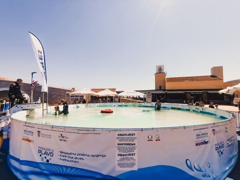 Tijekom ovog vikenda montažni 10 metarski bazen pod nazivom Pogled u plavo smjestio se je na staroj rivi u gradu Pagu s ciljem promocije ronjenja, ronilačkih lokacija i ljepota hrvatskog podmorja kroz besplatna probna ronjenja.